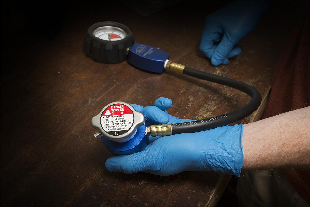 - Tests radiator and radiator cap for leak and correct pressure release limit